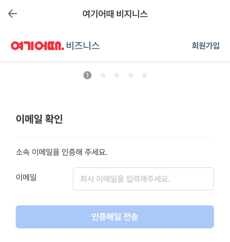 - 회사 인증 방식 선택 : 1. 기업 이메일 인증: 회사 도메인(@company.com) 이메일이 있다면 즉시 가입됩니다. 2. 재직 증명 서류 제출: 이메일이 없거나 개인사업자라면 명함, 사업자등록증, 사원증 등을 사진 찍어 업로드하면 됩니다.